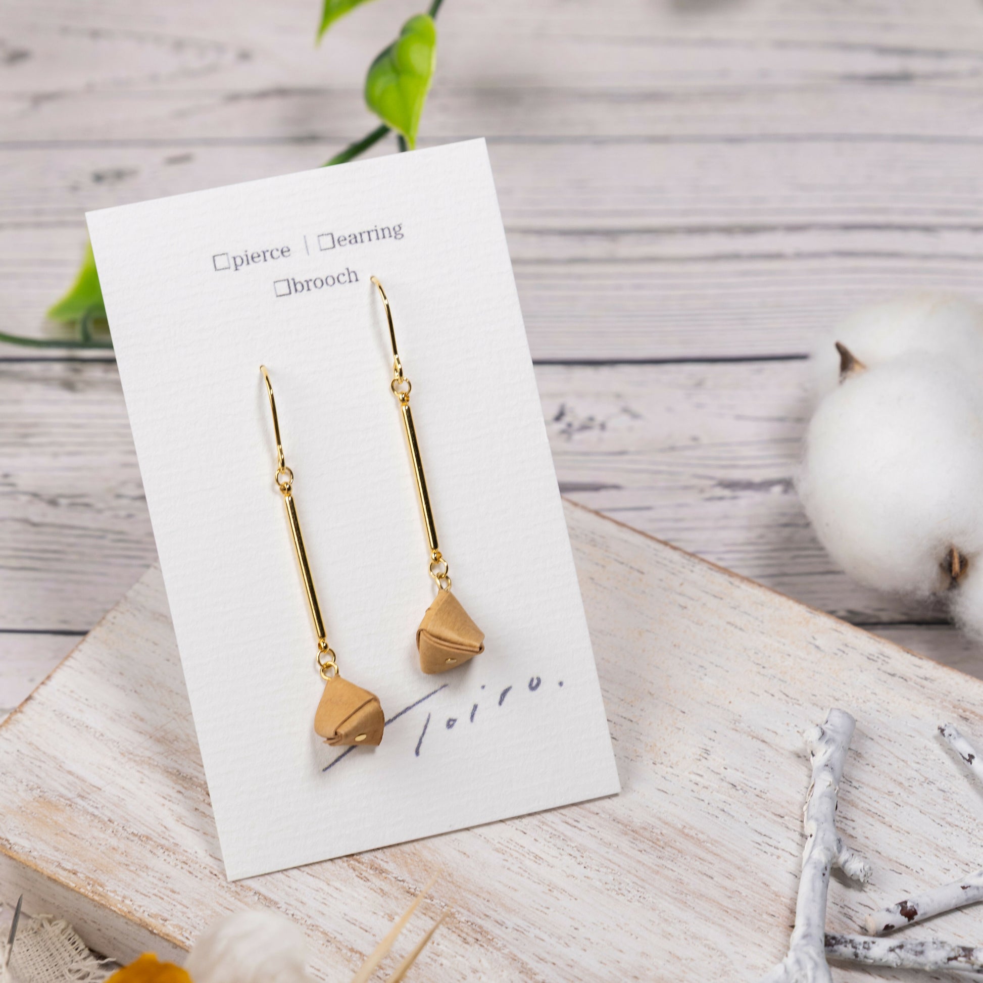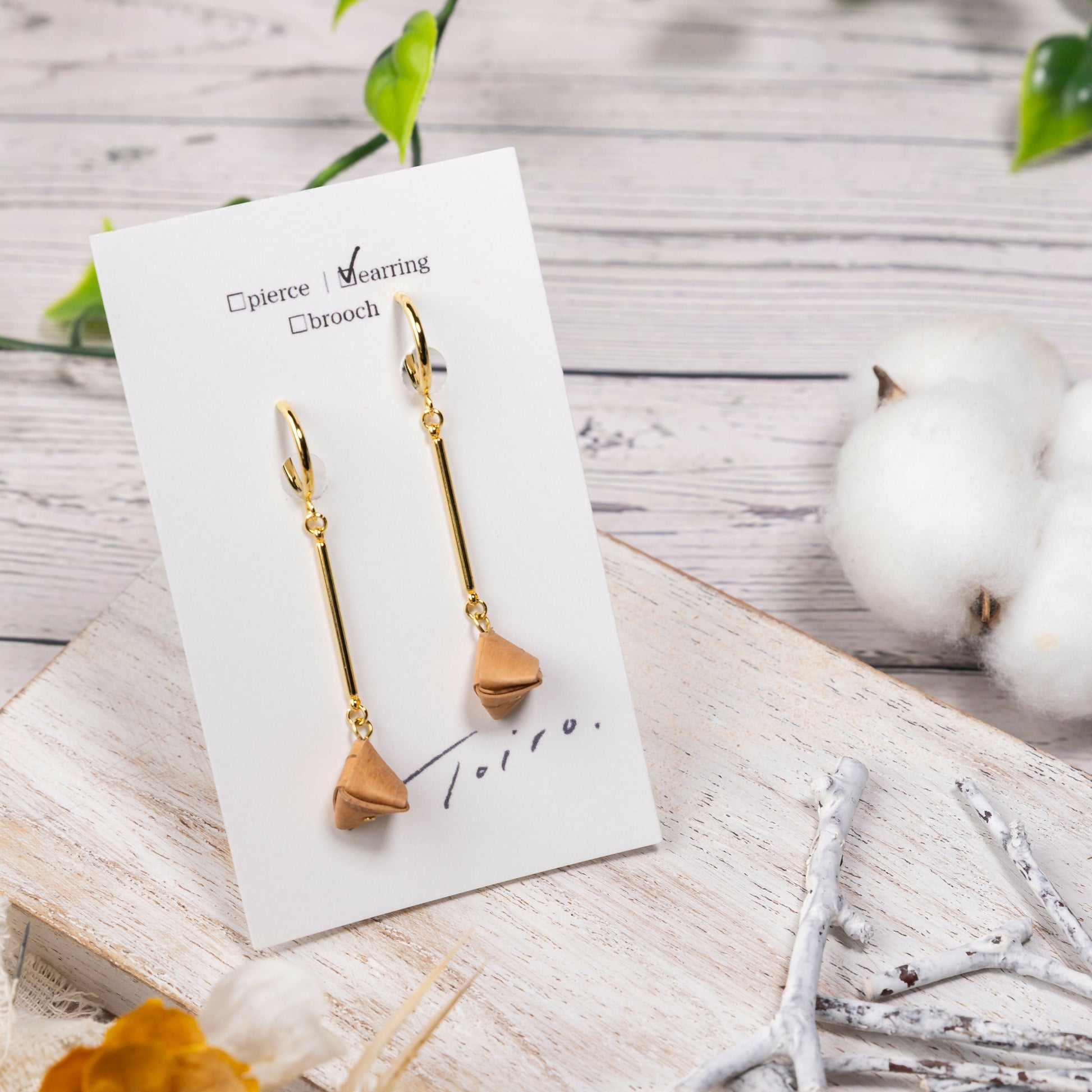 白樺を折り重ね、耳元にすっと芯を通すようなデザイン。